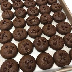 10.Press the roasting-resistant chocolate beans and place them on a baking sheet lined with greaseproof paper.Remember to leave space between each cookie.
