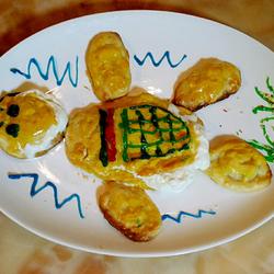 10.Preheat the oven at 180 degrees and bake at 150 degrees for twenty minutes.Take it out and let it cool.After it cools, draw the pigmented jam on the biscuits and put some cream on it for decoration.Put on a look that children like