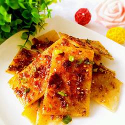 11.Take out the fried pancakes, brush with sauce and sprinkle with chives