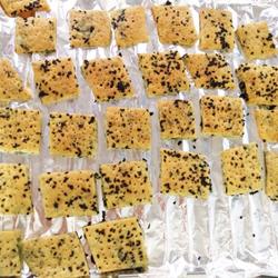 6. Roll out into thin slices of about 0.2cm.Sprinkle sesame seeds and use a rolling pin to roll the sesame seeds into the dough.