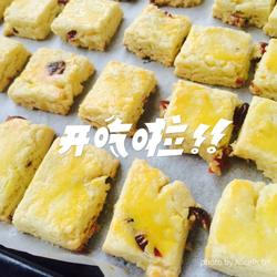 4.Use a knife to cut into small pieces, Brush with egg wash and put in the oven at 180 degrees, middle layer, for about 20 minutes, until the surface is golden brown