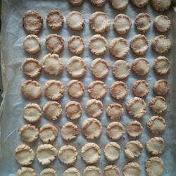 3.Because the biscuit mold is gone, we can only make this kind of small biscuits.Just pinch the dough a little, form it into a dough, and press it directly in the middle.Like some margarita cookies.Heat up and down to 190 degrees, the time depends on your oven, mine is 12 minutes.