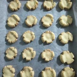 8. Place it on a baking sheet lined with greaseproof paper and press it with your thumb! And preheat the oven!