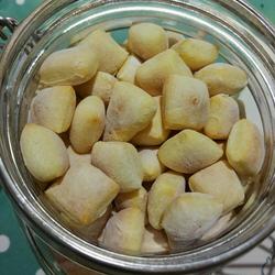 2. Roll out into 0.5-0.7 cm thick sheets, remember both sides All must be dusted with flour otherwise they will stick, then cut into strips as thick as a finger, and then cut into small cubes