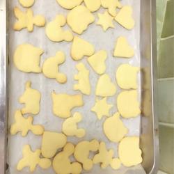 12. Cover the baking sheet with oil paper and gently lift the buckle model with your hands and place it on the oil paper.Preheat the oven for 5 minutes.My oven bakes at 180 degrees for 12 minutes, "(each oven model has different temperatures, so check it at any time.Don't burn it)"