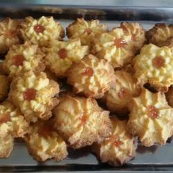 Soften butter naturally, beat with sugar, add flour and put it into the dough nozzle.Bake in the oven at 175 degrees for 10 minutes