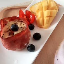 You can also beat the eggs first and then add cheese and garnish with fruits