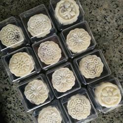 6.Move the ice skin into Form a ball, then move the purple potato filling and cranberry filling into a ball.Then wrap the filling into the ice skin and put down the cake press to press.Finally, the snow skin mooncake is completed.