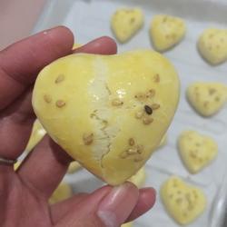3. Find a heart-shaped mold.Brush the top with egg wash and sprinkle with sesame seeds.