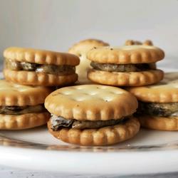 • 7.Put a small piece of the prepared beef noodle on the biscuit and cover it with another biscuit