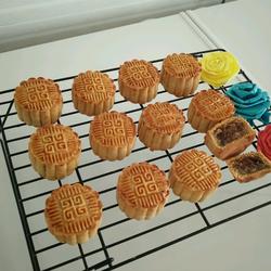17.Preheat the oven to 200°C, spray some water on the mooncakes, and bake for 7 minutes