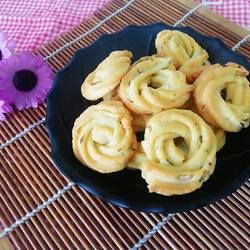 Butter softens at room temperature and does not turn into water! Cookies made after turning into water will fail.The green onions should be chopped into small pieces so that they do not squeeze out the flower shape.Just check the color frequently during roasting and let it cool before it tastes delicious!