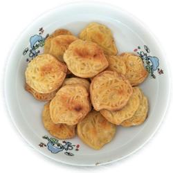 6. Take about 15g of dough each time and use a mooncake mold to shape the pattern, then place it into a baking tray lined with oil paper Arrange in the baking pan.At this time, you can preheat the oven to 160 degrees for 5 minutes