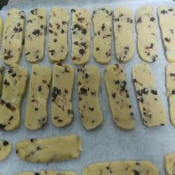 6. Take out the frozen dough and cut it into small even pieces.Preheat the oven and bake at 150 degrees for 15 minutes.When the surface of the biscuits is dry, adjust the heat to 100 degrees and continue baking for 10 minutes.Take them out of the oven!