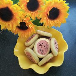 5. Take 50 grams of mixed butter paste, add it to the strawberry flour and mix well.