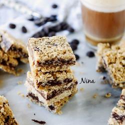 2. Heat butter and brown sugar in a microwave until completely melted, then add instant oats Mix the flakes evenly, spread 2/3 of the oatmeal in the baking pan and compact it, then pour the chocolate sauce on top, you can use a spatula to spread evenly, and spread the remaining 1/3 of the oatmeal on the top layer.