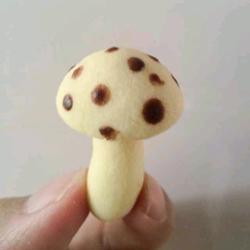 6.150 degrees for 10 minutes, the mushrooms are very small and color quickly.Pay attention to observation and do not Scorched.Melt the chocolate over water and dip the roasted mushroom heads into the chocolate.