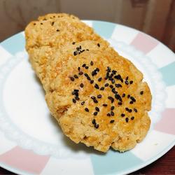 9. Divide the dough into 12 parts, bake 6 in the first oven, knead them into balls and flatten them Brush the surface with egg yolk and sprinkle with sesame seeds.