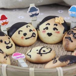 10. Finally, lightly dip both sides of the biscuits to make your hair, and then draw the facial expressions