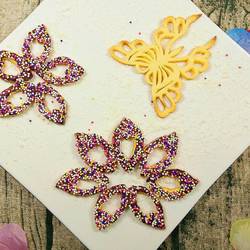 6. Put a layer of oil paper on the baking sheet, put the carved petals and the pressed ones Flowers are placed on oil paper.Preheat the oven for ten minutes to 180 degrees.Bake for twelve minutes.