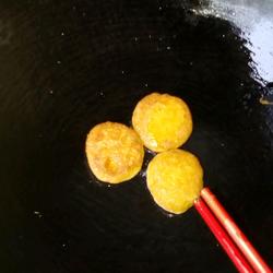 4.Mix pumpkin and glutinous rice flour into a dough, mix until not sticky.Then roll into small pieces for easy frying/frying