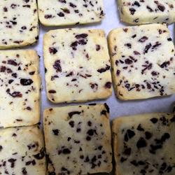 9.Take out the frozen cranberry biscuit ingredients, cut into 5mm thick slices, place on a baking sheet, and place in a preheated oven at 180 degrees for 15-20 minutes