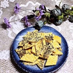 10.After making another flat plate , sprinkle with some black sesame seeds