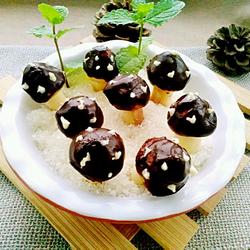 18.Take a mushroom, put it in the chocolate, and roll the mushroom in a circle.