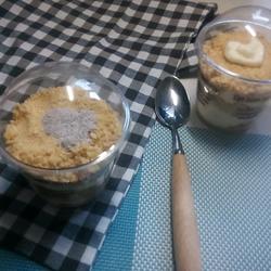 5. Repeat this until the cup is full.Note that the top layer is biscuits and pipe cream to decorate
