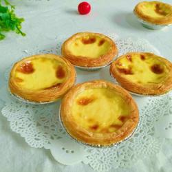 9.Pour the sifted egg tart batter into the tart shell.These ingredients are exactly 8 pieces, and pour until 8 pieces.Full points are enough.Put it into the preheated oven,