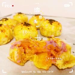 How to make taro paste, meat floss and egg yolk cake (egg tart skin version)