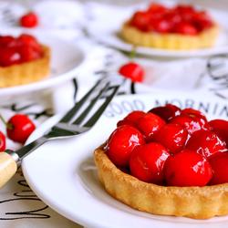 16. Unmold the baked tart shell and put the pickled cherries in the middle..