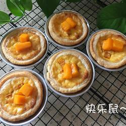 12.After it comes out of the oven, garnish the surface of the egg tart with 2 fresh diced mangoes.