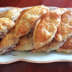 8.Put the purple sweet potato puree into the egg tart crust.