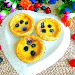 9.Put the wash into the egg tart shell Place the clean blueberries into the baking pan