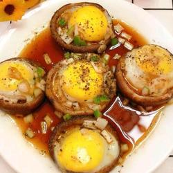 3.Crack the quail eggs and place them on the mushrooms