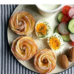 5. Place the apple slices on half of the dough in turn, Fold the other half of dough upwards to wrap the lower ends of the apple slices.