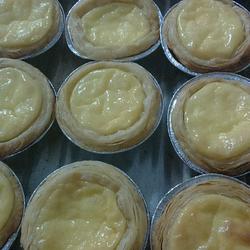 3. Take out the egg tart shell and add the prepared egg tart liquid in turn, place it on the plate and set it in the oven at 220 degrees Heat for 10 minutes and put in the test tray for 30 minutes.
