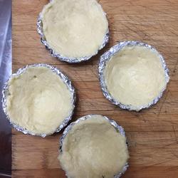 5. Knead the flour dough into a long strip, Cut into small sections and press into the egg tart mold.Pay attention to the thin bottom and thick edges and press them flat.
