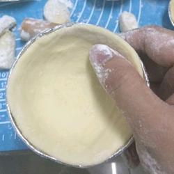 6. Hold the dough piece in your right hand, cover it with the tin foil tray in your left hand and adjust the position.Turn over, gently press and rotate with your thumbs to make the dough stick to the tin foil support.Try to make the bottom as thin as possible and the sides as thick as possible.It will be good if you press and press along the lines.Done~! ! ! ! ! ! ! ! After making it, put it in the refrigerator for more than half an hour before baking...It helps to shorten the time...Because of physics...Hehehe...