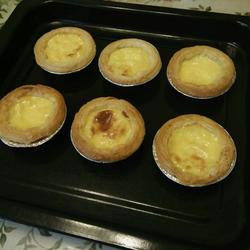 7. Observe the egg tart to see whether it is baked well.The sign of brown baking spots appearing in a small area on the surface of the egg tart liquid is allow.