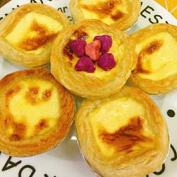 10.Place the egg tart crust on the baking sheet and fill with the egg tart liquid