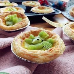 13.The egg tart shell is very crispy, and the butter-added egg tart liquid is more fragrant after baking.With the green kiwi fruit, it is unstoppably delicious