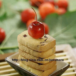 6.Cut the frozen rectangular dough into slices about 0.7CM thick with a knife.After cutting, place on the baking sheet and bake in the preheated oven.