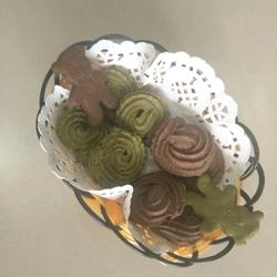 14.Use a decorating machine to squeeze the flowers neatly On silicone paper, preheat the oven, middle layer, upper and lower heat, 150 degrees, 20 minutes