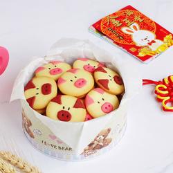 11. Attach the ears and nose of the piggy, and use chopsticks to stick the black sesame seeds on it Make the eyes and poke the nostrils with a sharp chopstick or a bamboo skewer from a barbecue skewer.