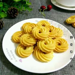 12. Hold the upper end of the piping bag with your right hand, pinch the lower end of the piping bag with your left hand, squeeze while turning, turn clockwise, and the cookies are ready (The above photo is a photo I took before.I was too lazy to take another photo today, so I only took a photo of the back.The butter used in today’s cookies is different from last time, and the color of the cookies is very yellow)