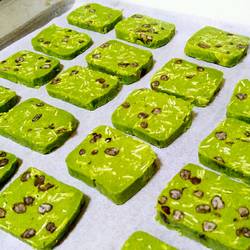 6. Preheat the oven to 160 degrees with upper and lower heat And slice the cookies (you need to prepare a sharp knife otherwise the cutting will not look good)