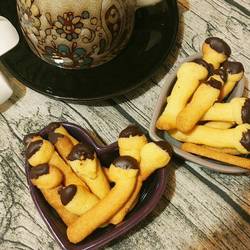 10. Coat a section of the cooled cookie bar with chocolate liquid and thoroughly Let it solidify~