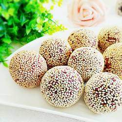 11. Heat oil in a pot, add purple potato balls and fry over medium heat until sesame seeds are slightly brown.